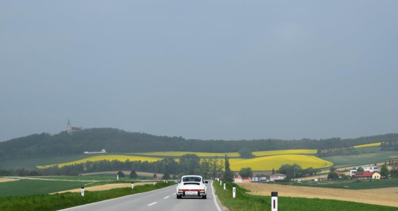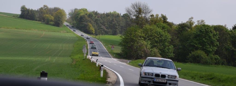 Um 08:40 Uhr nach dem Gruppenfoto startete der Konvoi von 13 Fahrzeugen bei herrlichem Wetter Richtung Wachau.